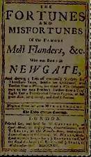 |CitationClass=تم تجاهله (مساعدة) - Defoe, Daniel (1722). The fortunes and misfortunes of the famous Moll Flanders, &c. Who was born in Newgate, and during a Life of continu'd Variety for Threescore Years, besides her Childhood, was Twelve Year a Whore, five times a Wife (whereof once to her own Brother) Twelve Year a Thief, Eight Year a Transported Felon in Virginia, at last grew Rich, liv'd Honest, and died a Penitent, Written from her own memorandums. Eighteenth Century Collections Online: W. Chetwood. الوسيط