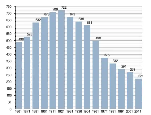 في سنة 1861 بلغ عدد السكان 490 نسمة، وتطور العدد ليصل في سنة 2011 لـ 221 نسمة.
