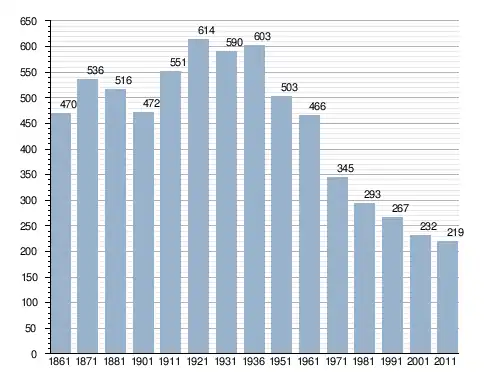 في سنة 1861 بلغ عدد السكان 470 نسمة، وتطور العدد ليصل في سنة 2011 لـ 219 نسمة.