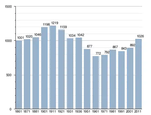 في سنة 1861 بلغ عدد السكان 1٬001 نسمة، وتطور العدد ليصل في سنة 2011 لـ 1٬026 نسمة.