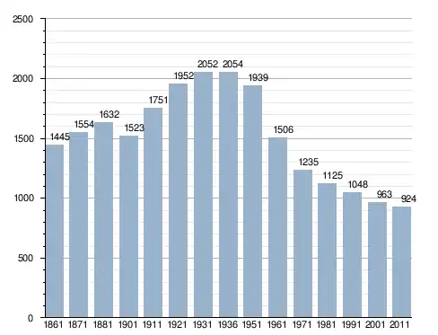 في سنة 1861 بلغ عدد السكان 1٬445 نسمة، وتطور العدد ليصل في سنة 2011 لـ 924 نسمة.