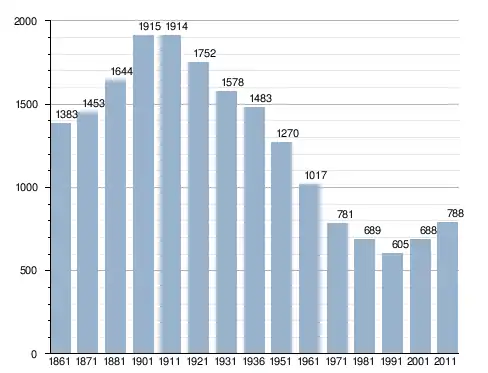 في سنة 1861 بلغ عدد السكان 1٬383 نسمة، وتطور العدد ليصل في سنة 2011 لـ 788 نسمة.