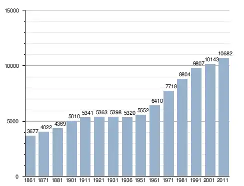 في سنة 1861 بلغ عدد السكان 3٬677 نسمة، وتطور العدد ليصل في سنة 2011 لـ 10٬682 نسمة.