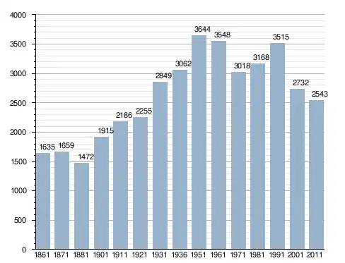في سنة 1861 بلغ عدد السكان 1٬635 نسمة، وتطور العدد ليصل في سنة 2011 لـ 2٬543 نسمة.