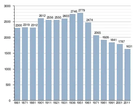 في سنة 1861 بلغ عدد السكان 2٬300 نسمة، وتطور العدد ليصل في سنة 2011 لـ 1٬631 نسمة.
