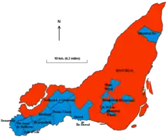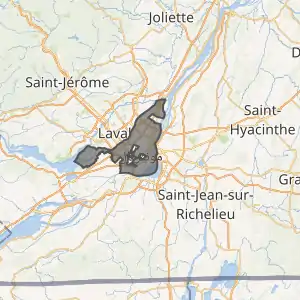وتعد منطقة مونتريال الكبرى ثانية أكبر منطقة حضرية في كندا بعد تورونتو. ويعيش حوالي 11% من سكان كندا في مونتريال الكبرى. تتكون منطقة مونتريال الكبرى من حوالي 75 مدينة وبلدة. يعيش حوالي 65% من سكان هذه المنطقة خارج المدينة.