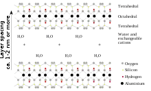 يعد المونتموريلونايت فئة فرعية من السمكتايت , 1:2معدن الفيلوسميكتايت الذي يتميز بأنه أكثر من 50% من الشحنة توجد على الورقة ثمانية السطوح، ومن المقرر أن قدرة المونتموريلونايت على تبادل الشحنات تعود إلى التبادل المتماثل للمغنيسيوم بالألمنيوم في السطح الجبسي .