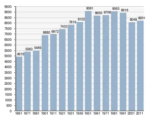 في سنة 1861 بلغ عدد السكان 4٬919 نسمة، وتطور العدد ليصل في سنة 2011 لـ 8٬201 نسمة.