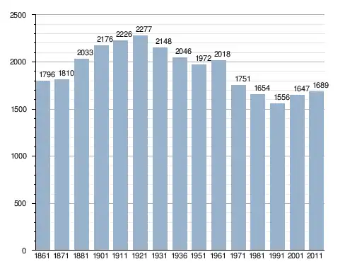 في سنة 1861 بلغ عدد السكان 1٬796 نسمة، وتطور العدد ليصل في سنة 2011 لـ 1٬689 نسمة.