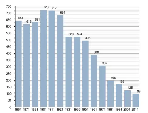 في سنة 1861 بلغ عدد السكان 644 نسمة، وتطور العدد ليصل في سنة 2011 لـ 99 نسمة.