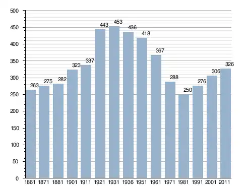 في سنة 1861 بلغ عدد السكان 263 نسمة، وتطور العدد ليصل في سنة 2011 لـ 326 نسمة.