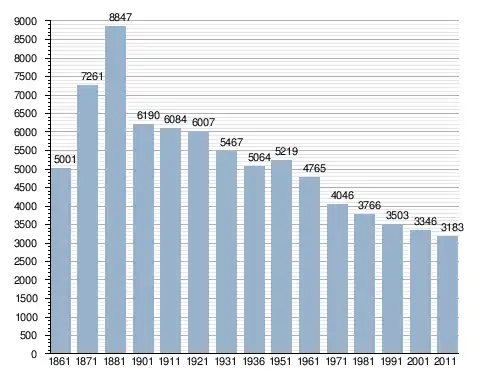 في سنة 1861 بلغ عدد السكان 5٬001 نسمة، وتطور العدد ليصل في سنة 2011 لـ 3٬183 نسمة.