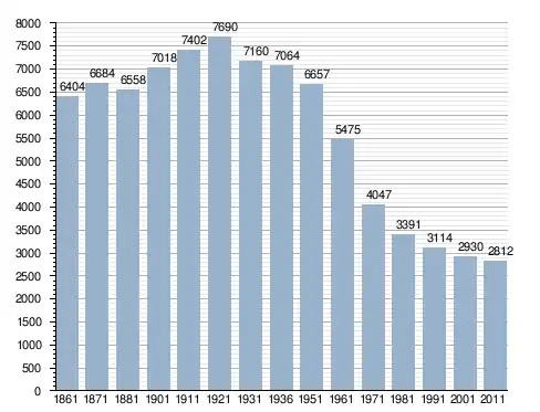 في سنة 1861 بلغ عدد السكان 6٬404 نسمة، وتطور العدد ليصل في سنة 2011 لـ 2٬812 نسمة.