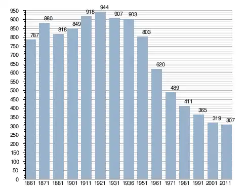 في سنة 1861 بلغ عدد السكان 787 نسمة، وتطور العدد ليصل في سنة 2011 لـ 307 نسمة.