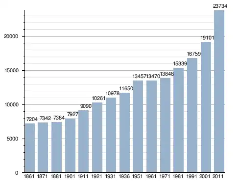 في سنة 1861 بلغ عدد السكان 7٬204 نسمة، وتطور العدد ليصل في سنة 2011 لـ 23٬734 نسمة.