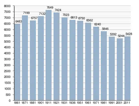 في سنة 1861 بلغ عدد السكان 6٬483 نسمة، وتطور العدد ليصل في سنة 2011 لـ 5٬428 نسمة.