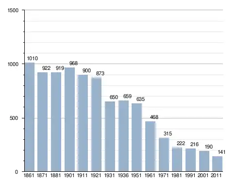 في سنة 1861 بلغ عدد السكان 1٬010 نسمة، وتطور العدد ليصل في سنة 2011 لـ 141 نسمة.