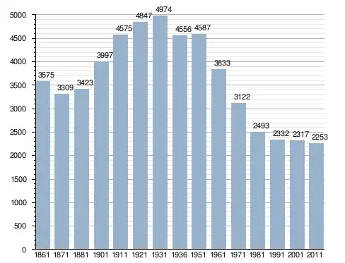 في سنة 1861 بلغ عدد السكان 3٬575 نسمة، وتطور العدد ليصل في سنة 2011 لـ 2٬253 نسمة.