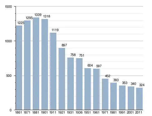 في سنة 1861 بلغ عدد السكان 1٬225 نسمة، وتطور العدد ليصل في سنة 2011 لـ 324 نسمة.