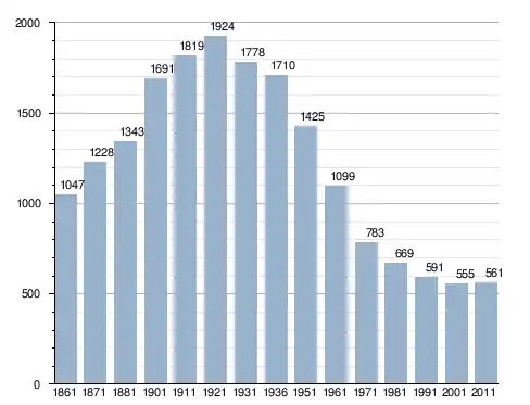 في سنة 1861 بلغ عدد السكان 1٬047 نسمة، وتطور العدد ليصل في سنة 2011 لـ 561 نسمة.