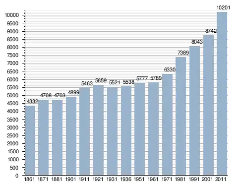 في سنة 1861 بلغ عدد السكان 4٬332 نسمة، وتطور العدد ليصل في سنة 2011 لـ 10٬201 نسمة.