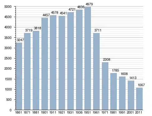 في سنة 1861 بلغ عدد السكان 3٬247 نسمة، وتطور العدد ليصل في سنة 2011 لـ 1٬067 نسمة.