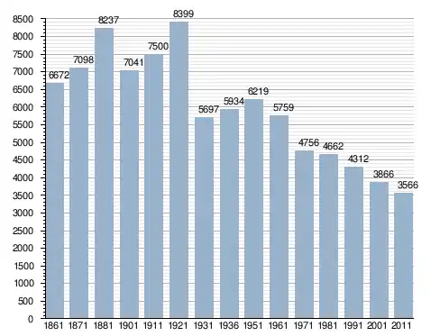 في سنة 1861 بلغ عدد السكان 6٬672 نسمة، وتطور العدد ليصل في سنة 2011 لـ 3٬566 نسمة.