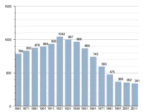 في سنة 1861 بلغ عدد السكان 786 نسمة، وتطور العدد ليصل في سنة 2011 لـ 341 نسمة.