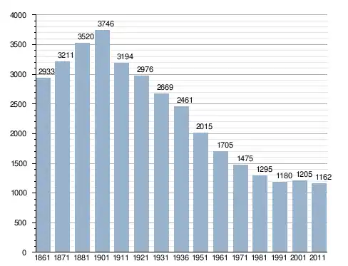 في سنة 1861 بلغ عدد السكان 2٬933 نسمة، وتطور العدد ليصل في سنة 2011 لـ 1٬162 نسمة.