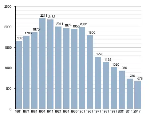 في سنة 1861 بلغ عدد السكان 1٬661 نسمة، وتطور العدد ليصل في سنة 2017 لـ 678 نسمة.
