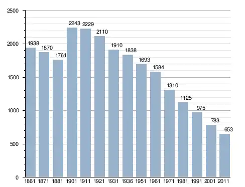 في سنة 1861 بلغ عدد السكان 1٬938 نسمة، وتطور العدد ليصل في سنة 2011 لـ 653 نسمة.