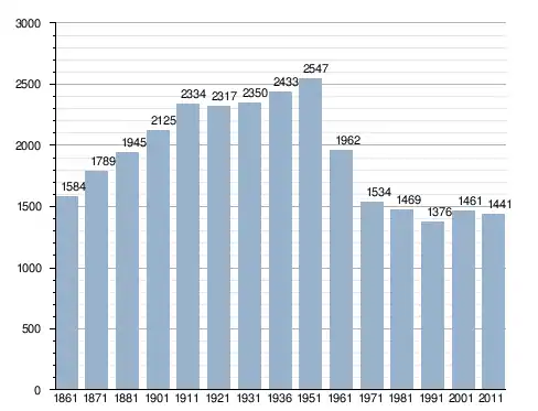 في سنة 1861 بلغ عدد السكان 1٬584 نسمة، وتطور العدد ليصل في سنة 2011 لـ 1٬441 نسمة.