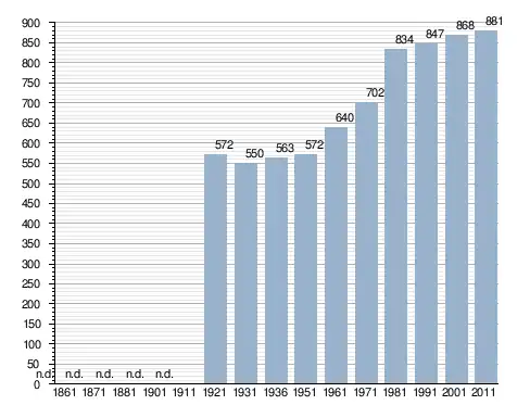 في سنة 1871 بلغ عدد السكان نسمة، وتطور العدد ليصل في سنة 2011 لـ 881 نسمة.