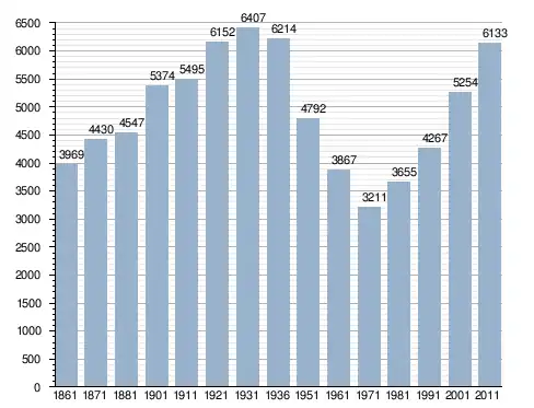 في سنة 1861 بلغ عدد السكان 3٬969 نسمة، وتطور العدد ليصل في سنة 2011 لـ 6٬133 نسمة.