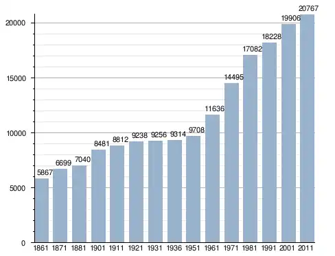 في سنة 1861 بلغ عدد السكان 5٬867 نسمة، وتطور العدد ليصل في سنة 2011 لـ 20٬767 نسمة.