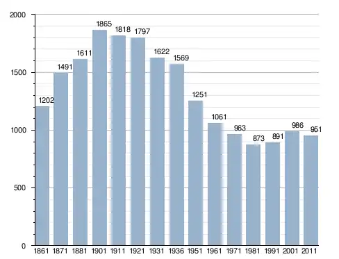 في سنة 1861 بلغ عدد السكان 1٬202 نسمة، وتطور العدد ليصل في سنة 2011 لـ 951 نسمة.