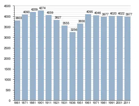 في سنة 1861 بلغ عدد السكان 3٬803 نسمة، وتطور العدد ليصل في سنة 2011 لـ 3٬977 نسمة.