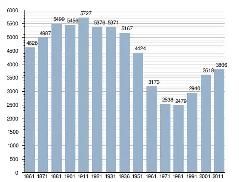 في سنة 1861 بلغ عدد السكان 4٬626 نسمة، وتطور العدد ليصل في سنة 2011 لـ 3٬806 نسمة.