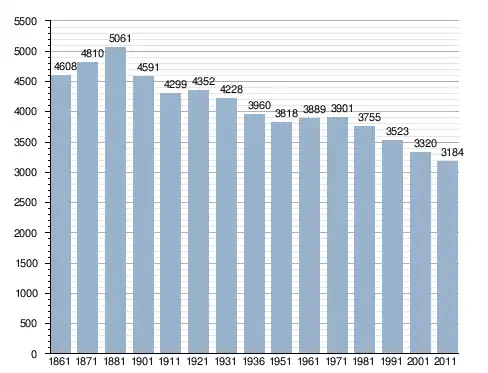 في سنة 1861 بلغ عدد السكان 4٬608 نسمة، وتطور العدد ليصل في سنة 2011 لـ 3٬184 نسمة.