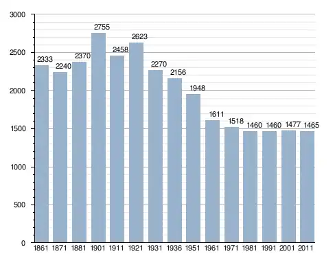 في سنة 1861 بلغ عدد السكان 2٬333 نسمة، وتطور العدد ليصل في سنة 2011 لـ 1٬465 نسمة.