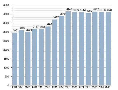في سنة 1861 بلغ عدد السكان 2٬953 نسمة، وتطور العدد ليصل في سنة 2011 لـ 4٬121 نسمة.