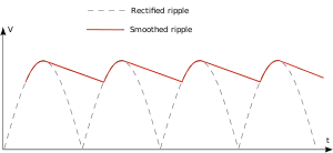 في حال استخدام ملف بدلا من المكثفة للتنعيم فتصبح العلاقة التقريبية على الصورة: