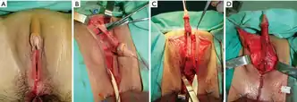 بعد ذلك، يتم استقدام الجلد من الشفرين الصغيرين ولفهما حول البظر وتثبيتهما بالقطب. تتم عملية رأب الصفن عادةً في نفس الوقت. عمليات استئصال المهبل، استئصال الرحم، واستئصال المبيضين يمكن أن تتم أيضاً في الوقت ذاته أيضاً.