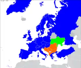 | EU | EFTA | تركيا CU | كرواتيا | مقدونيا الشمالية | ألبانيا | البوسنة والهرسك | صربيا والجبل الأسود | كوسوفو | مولدوفا | أوكرانيا | جورجيا | أرمينيا | أذربيجان | |