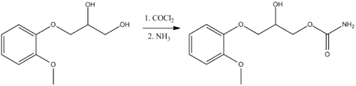 من الممكن أن يُصنّع ميثوكاربامول من الـ غوايفينزين عبر تفاعل متوالٍ مع فوسيجين و الأمونيا.