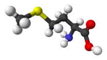 ميثيونين هو حامض أميني كبريتي من مكونات البروتين. وهو الحمض الأميني الأول في أي بروتين وبالتالي هو لازم لتخليق البروتين وبالتالي له أهمية في قيام الجسم بالوظائف الحيوية كما انه يرتبط (مضاد كودونهUAC)على الحمض الريبوزي(البروتيني)الناقل(tRNA) ب(كودون البدء)AUG على الحمض الريبوزي(البروتيني)الرسول(mRNA)ويعتبر الميثيونين الحامض الأميني الأول في جميع عديد الببتيد تقريباً غير انه قد يزال لاحقاََ اثناء تكوين البروتين.