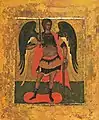 أيقونة روسية أرثوذكسية تظهر الملاك ميخائيل كاملاً