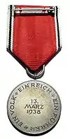 | السبب | Awarded to all German military personnel who participated in the march to Austria, members of the Austrian branch of the NSDAP and other Austrians who contributed to the آنشلوس. |