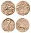 | 1904 | سانت لويس، الولايات المتحدة | الوجه: نيكة حاملا إكليل غار وسعفة نخيل الخلف: رياضي يحمل إكليل غار وبخلفية معبد إغريقي |