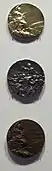 | 1900 | باريس, فرنسا | الوجه: الهة مجنحة حاملة قوس الغار ومن ورائها باريس الخلف: رياضي فائز حاملا قوس الغار ومن ورائه الاكروبوليس. ملاحظة: الميدالية الوحيدة التي لم تأخذ شكلا دائريا. |